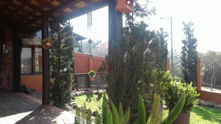 Casa central 2 dormtórios, cozinha, churrasqueira, fogão a lenha, banheiro, outra com 3 dormitórios, sala, cozinha, escritório, piscina, garagem 3 carros, cercado com portão eletrônico na rua principal terreno com 660,00 m²
